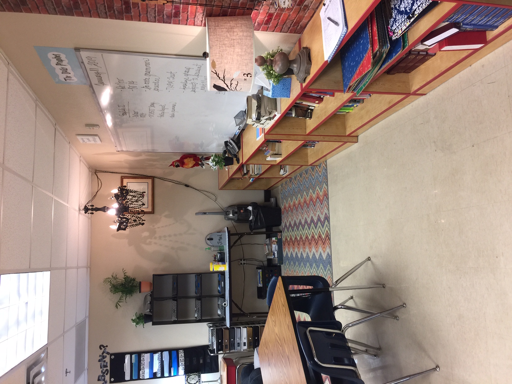 I added some rugs, two chairs from FB marketplace, two chairs from my mom’s house, and some side tables. Over the summer, I went to the Wizarding World of Harry Potter, and I decided my room needed to look like the Ravenclaw Common Room. I started collecting little touches that would bring the Wizarding World into my classroom.